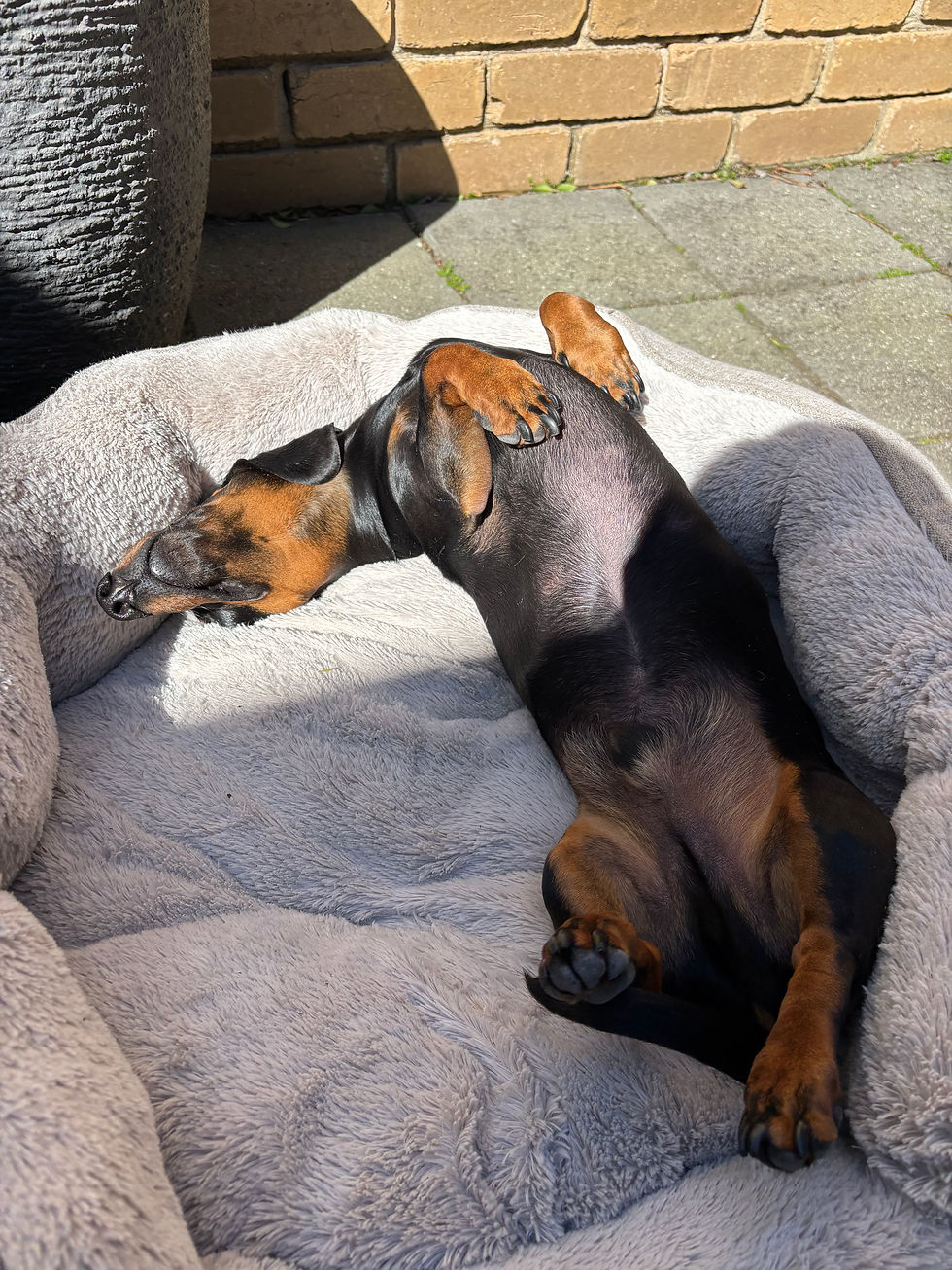 George is a 5 year old miniature Dashund. He initially presented as he had a non resolving skin condition - he was biting his back legs and needed to have a cone on his head all the time. He was on antibiotics, steroids, cortisone creams and still could not be trusted to have his cone removed or he would chew his back legs until he had open wounds.